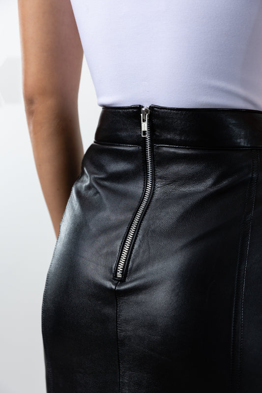 ROME LEATHER HIGH WAISTED KNEE LENGTH SKIRT